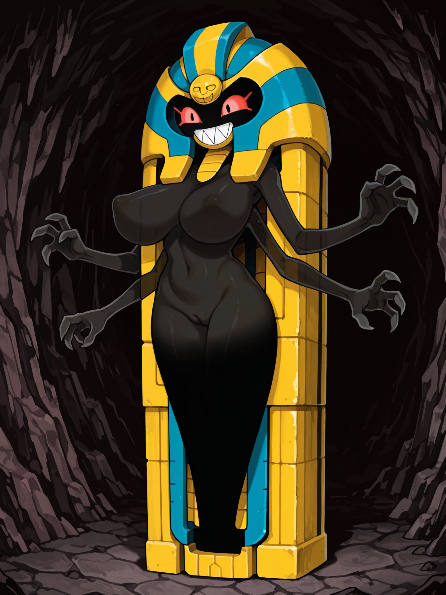 "And lastly Cofagrigus. Not an actual hidden pokemon but from a quick detour to a Mirage cave when I remembered I got the eon flute from Steven."