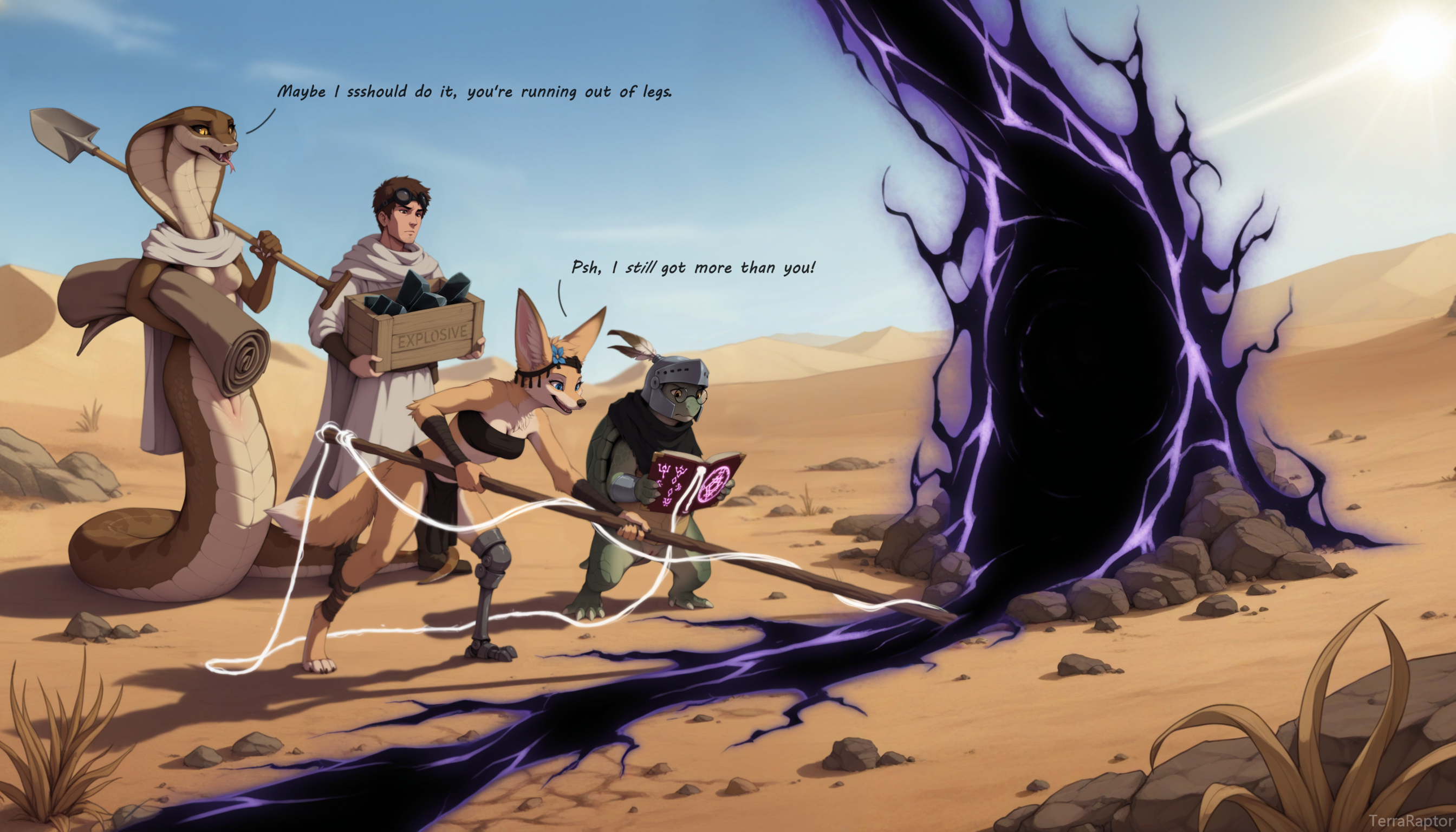 Unfortunately the presence of so much petrosylabite on a mass geographic scale causes void rifts to form whenever the occasional issure storm rages. Essentially, the magic gets too excited to the point that it causes a fantastic rupture, as if the air itself was torn. Left unchecked, these rifts are quite destructive to the surrounding landscape. Crews with specialized equipment known as devoiders collect bounties on their removal, though the process is dangerous as void spores have a tendency to unpredictably float through the rift and cause chunks of mass - such as limbs - to simply disappear like they were never there.