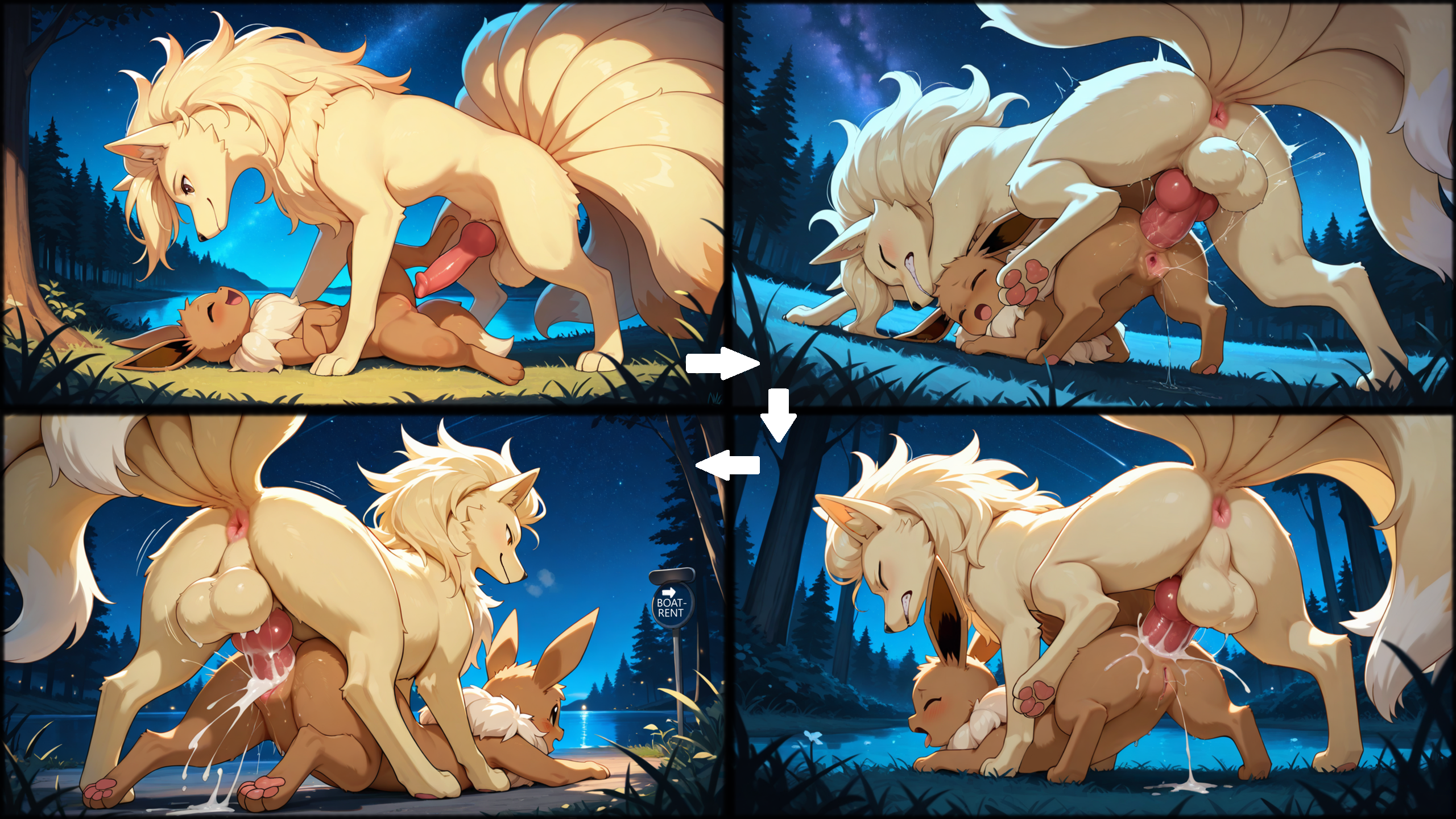 He withdrew his penis from her and said contentedly, "Alright, then let's go home now." He gave her a gentle kiss on the forehead and thanked her. Then they walked side by side along the forest path home. Flare was already inwardly looking forward to his mistress's reaction when she saw him in this form as Ninetales.