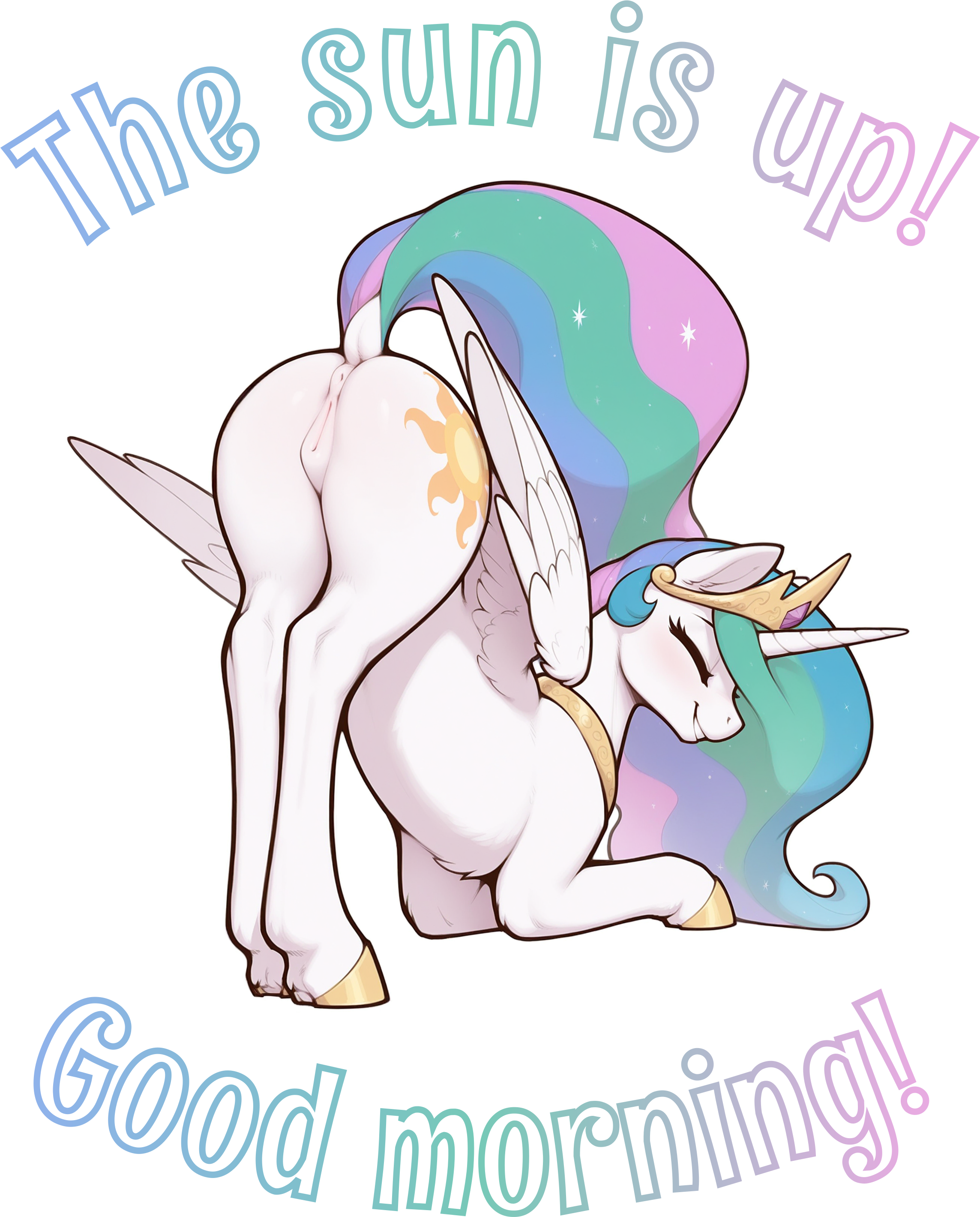 No watermark or story for this week's post! Had this idea for a cute sticker, and I love how it turned out. Celestia is by far my favorite pony, and with that, she's also the sexiest <3 Such a gorgeous mare with such a beautiful white rump~ I love her personality, too; so friendly, playful, and young-at-heart. She's the perfect mare to me, so I'm very happy to be doing more images of her. I hope you all enjoy this week's post, and next week I'll be sure to have a good story done! In the meantime, go enjoy some of my prior posts (please~ <3). They're meant to be enjoyed more than once, after all! ^^