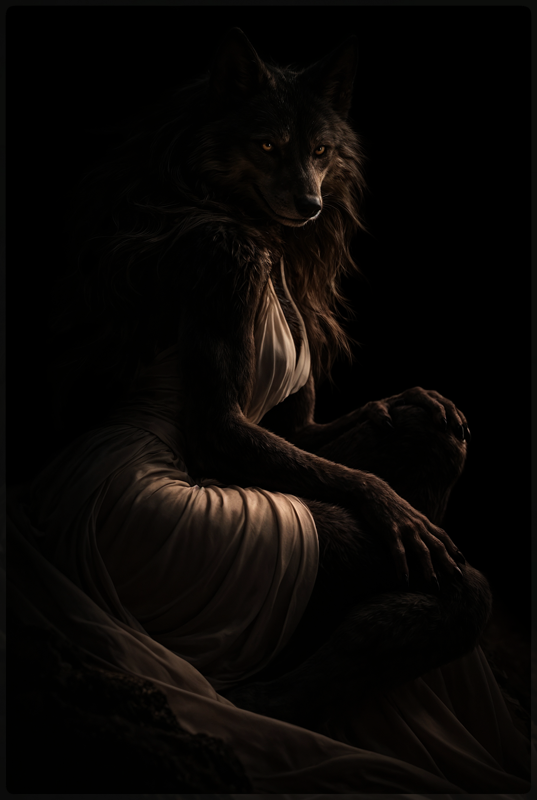 She emerges from shadow like thought from silence, holding darkness close as though it were the only companion left worth keeping.