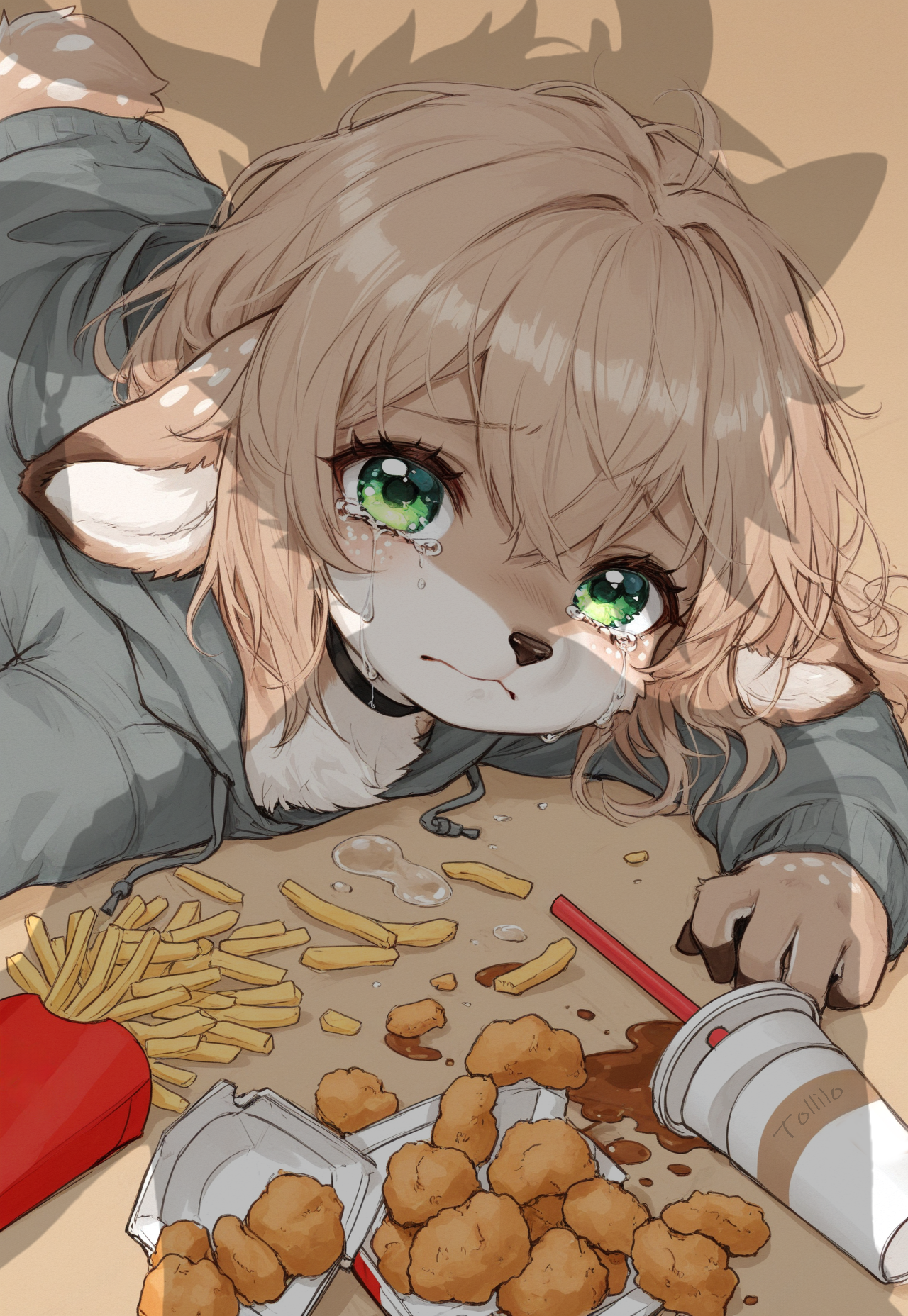 She got pushed and spilled her nuggies :(