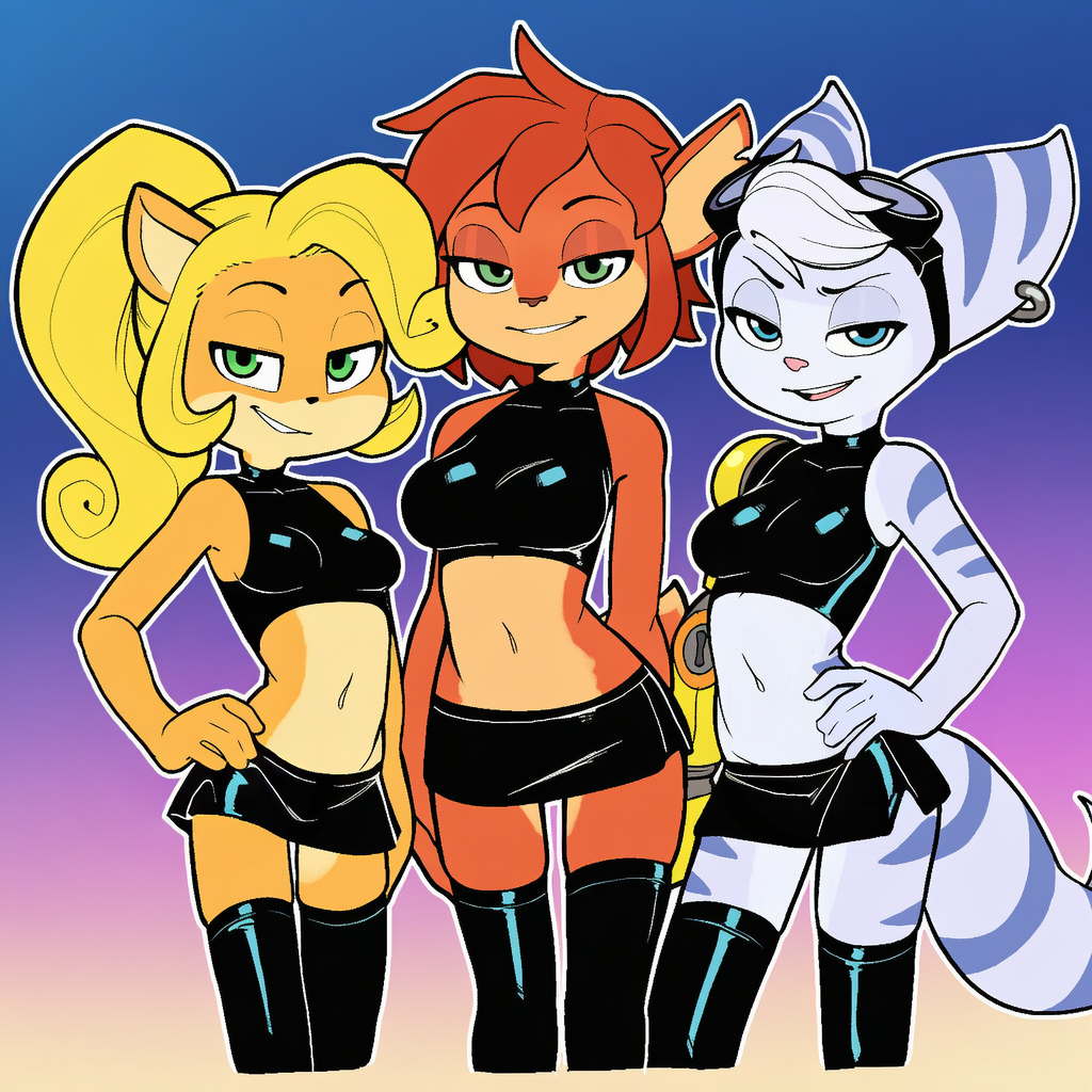 coco bandicoot, elora, and rivet (crash bandicoot (series) and etc) directed by director sabre