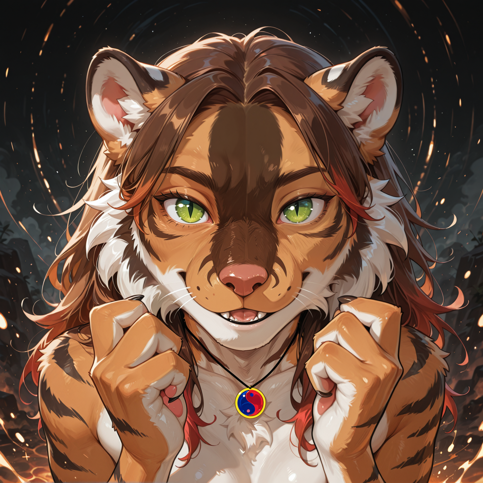 Base done in SwarmUI using the Yiff in Hell XXX TENDED 2.0 checkpoint, then heavily inpainted using KritaAI to get the correct markings and add the yinyang necklace.